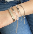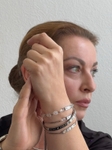 Stilīga un izturīga rokassprādze no 316. pakāpes nerūsējošā tērauda ar smalku gravējumu trīs valodās: “Par Dzīvot”, “Live on”, “Прожить” un dekoratīviem kristāliņiem.