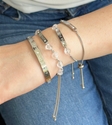 Eleganta un pielāgojama rokassprādze ar smalku gravējumu “Par Dzīvot” un dabīgiem kalnu kristāla akmentiņiem - spēka un iekšējā miera simbolu. Izgatavota no 316. pakāpes nerūsējošā tērauda un piemērota ikdienas valkāšanai.